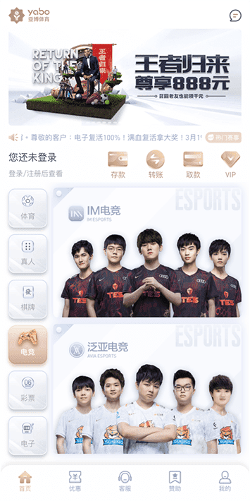 创新电竞竞猜模式,时时滚球,独创自由串关。注单秒确认,热门赛事秒结算,独家滚球助您嗨翻全场。绝妙畅爽体验,一切竞有可能!提供所有大型赛事,每月玩家可期待超过百场比赛及上万盘口!拥有令人惊叹的视觉界面及高效的用户体验,所以能让您轻松上手,一目了然,轻松投注。